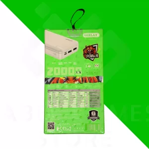Constructed with durable ABS material and equipped with overcurrent and overvoltage protection, this power bank ensures safety while charging. It is compact yet powerful, weighing only 371g, and fits easily into your bag. Ideal for travel, work, and emergencies, the Gerlax 20000mAh power bank keeps your devices charged and ready to go.