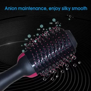 3)Negative Ion Technology: one step hair dryer and styler volumizer with negative ions saturating the air flow and ceramic coated brush head. The hair dryer and straightener helps to improve your hair condition and nourish damaged hair, makes your hair shiny and smooth while reducing static.